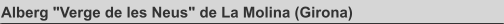 Superficie construida: 1.256,09 m2 Fecha proyecto: Primera fase: 1983 Segunda fase: 1989 Localidad: La Molina (Girona) Estado: Construido. Descripción proyecto: - Rehabilitación y reforma del albergue “Verge de les Neus” de La Molina. Cambios funcionales, de distribución, estéticos y refuerzos estructurales. Se habilitan espacios de dirección. - Especial atención a la ventilación e iluminación natural de las estancias. - Aspecto de equipamiento unitario y adaptado al privilegiado entorno donde se ubica a pesar de las diversas intervenciones sufridas a lo largo de los años.