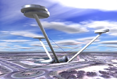 - La estructura de esta construcción en altura se basa en el efecto balanza, gracias a un sistema de cables que conecta los tres mástiles entre sí solidarizando su comportamiento.
