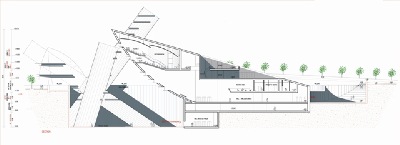 - La resta del programa es troba en el basament, en uns edificis simulant ser vaixells a mig enfonsar al llac, contenint l'edifici destinat a sala d'actes, biblioteca i els dos escenaris per concerts encarats al parc.
