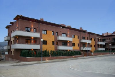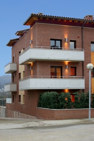 Superficie construida: 8.328,60 m2 Fecha proyecto: 2004-2006 Localidad: Santa Eulàlia de Riuprimer (Barcelona) Estado: Construido. Descripción proyecto: Se plantea la construcción de 55 viviendas distribuidas en tres bloques lineales en un emplazamiento que tiene la singularidad de tener todas las orientaciones agradables, ya sea por unas largas vistas debidas a la posición topográficamente elevada del emplazamiento, por tener salida a la gran zona exterior comunitaria (con piscina, sauna, gimnasio ...) o bien por la singularidad de dar a la calle y a la plaza que tienen los edificios delante. Arquitectónicamente el proyecto busca una coherencia formal a través del material, obra vista semimanual hidrofugada, a pesar de las singularidades que cada bloque tiene. Un tratamiento especial merece el bloque esquinero, perpendicular a los dos primeros, que resuelve la esquina con una singular chimenea revestida de acero cortén que se convierte en el referente de todo el conjunto. Este bloque esquinero, además, resuelve el desnivel topográfico de la calle lateral con una sola escalera de comunidad y un solo ascensor mediante una audaz solución del bloque de comunicaciones verticales.