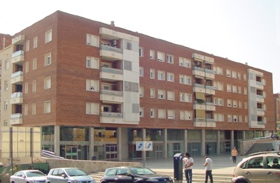 El projecte, doncs, adopta una distribució funcional al màxim de racional, tenint en el soterrani -2 el recorregut arqueològic (enllaçat amb el museu), al soterrani -1 l’aparcament, a la planta baixa i altell una gran galeria comercial porxada absolutament vidriada mitjançant un mur cortina a doble alçada (intentant reflectir les restes romanes del gran espai públic que té enfront) i les quatre plantes restants es desenvolupen 24 habitatges, dissenyats per tal de fruir el màxim nombre d’estances de les privilegiades vistes sobre l’espai públic i de il·luminació natural.