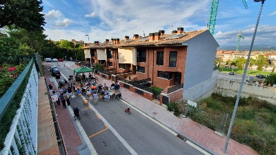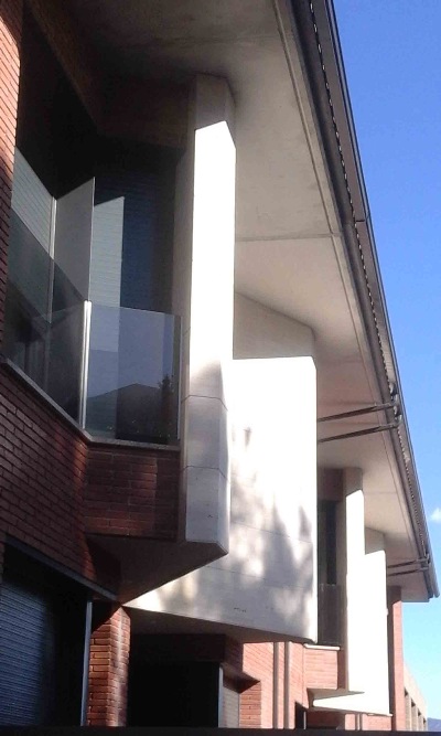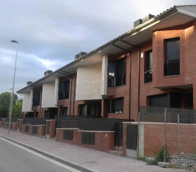 Superficie construida: 1432,86 m2 Fecha proyecto: Mayo 2016. Localidad: Vic (Barcelona). Estado: Construido. Descripción: El proyecto desarrolla 7 viviendas unifamiliares en hilera. Éstas disponen de una planta sótano con una única entrada común para vehículos, zona de día en la planta baja y de noche en la planta primera. En la imagen del conjunto destaca la calidez aportada por la obra vista cerámica donde resaltan unos cuerpos volados en forma de "alas de mariposa" revestidos de travertino italiano. Estos elementos volados posibilitan unas interesantes vistas tangenciales y permiten que cada casa disponga también de una mejor iluminación natural.