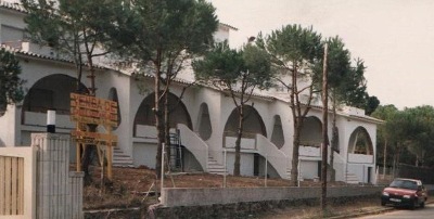 D’aspecte blanc i desenfadat, la construcció intenta col·locar-se respectuosament enmig d’una pineda típica de la zona, sense masses estridències i mirant de conservar al màxim la magnífica vegetació autòctona.