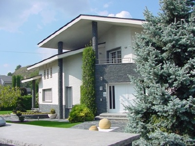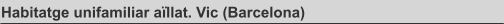 Superfície construïda: 693,68 m2 Data projecte: 1989 Localitat: Vic (Barcelona) Estat: Construïda. Descripció projecte: El projecte, de gran superfície construïda, s’enfronta a la construcció d’un gran volum edificat a través del contrast entre el blanc del totxo de formigó amb que es revesteix la vivenda i el negre de la pissarra de la teulada i de la pedra. La pretensió era alleugerir visualment l’impacte del volum edificat a través de la coberta, tallada a diferents nivells, que seguia la seva pròpia lògica i s’extenia més enllà de la projecció estricta del cos edificat, generant espais exteriors coberts a doble altura com el de l’entrada principal amb unes interessants vistes en diagonal.