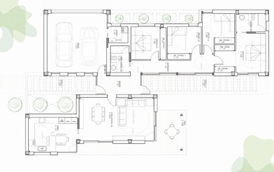 - S'ha parat especial atenció en les orientacions de les estances principals amb l'objectiu d'obtenir un habitatge radicalement obert al jardí sense renunciar a la màxima sostenibilitat i eficiència energètica en la seva futura utilització.