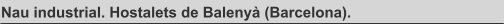 Superfície construïda: 451,71 m2 Data projecte: 2005 Localitat: Els Hostalets de Balenyà (Barcelona) Estat: Construït. Descripció intervenció: Es construeix una nau industrial entre mitgeres, reculant la façana 8 metres respecte l’alineació del carrer deixant un pati previ d’accés. Des de l’exterior es pot entrar directament a la nau o bé fer-ho a un vestíbul que, mitjançant una escala, condueix a l’altell situat a planta primera. La façana es soluciona amb bloc de formigó color beige i amb un ritme ordenat d’obertures, conferint un ordre evident a la façana.